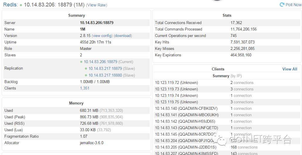 贴张Redis缓存服务已经运行445天,处理了110亿的请求的监控图: