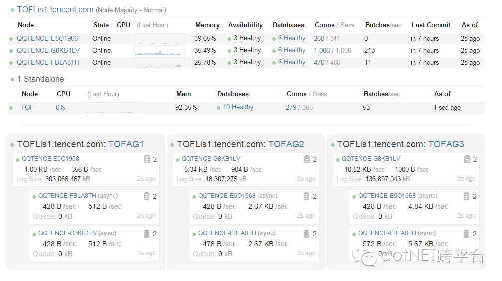 SQL Server是TOF唯一的源数据库,所有Redis的数据都来自SQL Server。使用微软的SQL Server监控组件AlwaysOn Availability Groups部署了一个SQL Server集群。服务器集群的配置也比较低4核32G 的A5机器。
